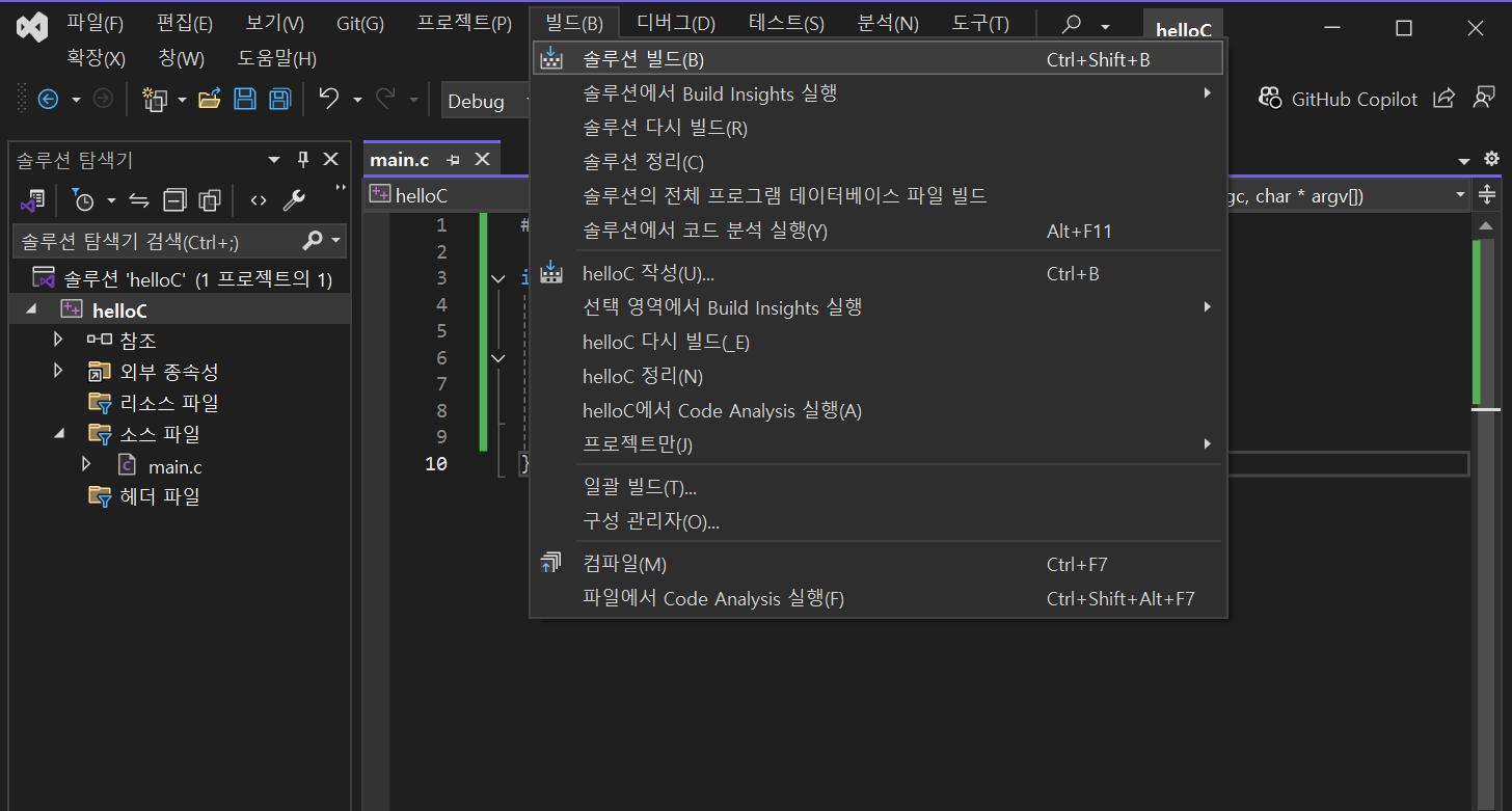Visual Studio에서 C프로그램 빌드하기