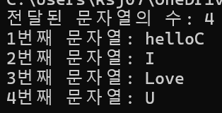 그렇다는 말은 helloC I Love U라는 정보가 main함수로 전달되었다는 것을 알 수 있다