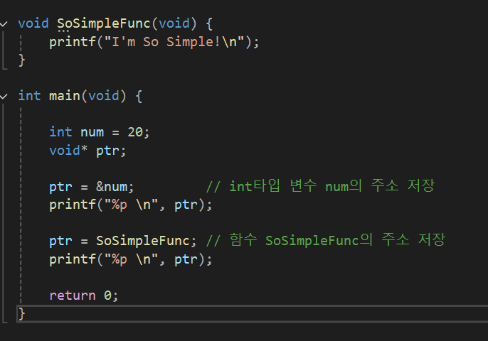 fptr = SoSimple; // 상수의 값을 변수에 저장