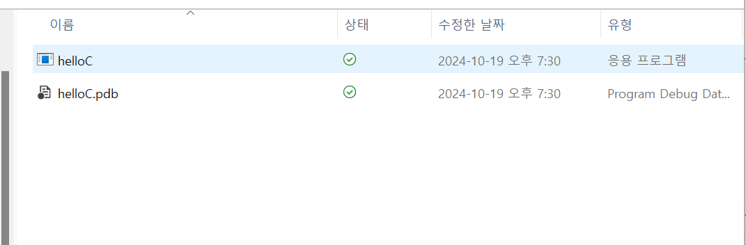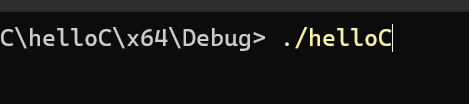 ** 여기서도 저렇게 터미널로 열먼 PowerShell로 실행돼서 걍 helloC로는 안먹고 ./helloC와 같이 경로를 붙여줘야한다...CMD에서는