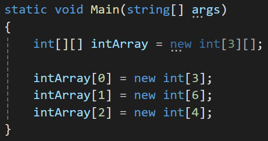 아래와 같이 전체 배열의 하나 하나 요소에 크기가 다른 배열들을 나중에 인스턴스화 할 수 있다.