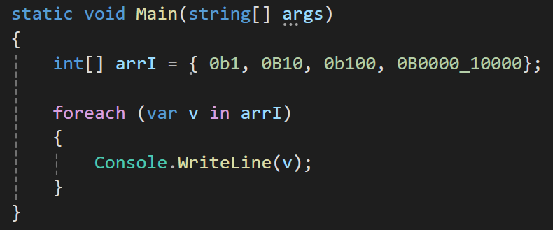 2진수를 배열에 넣은 후 var을 사용해서 타입에 맞게 배열의 값을 활용하는 것이 가능하다.
