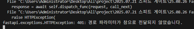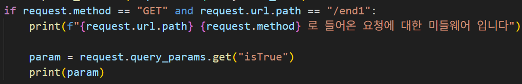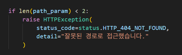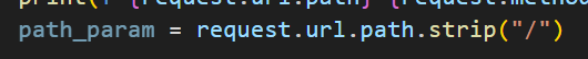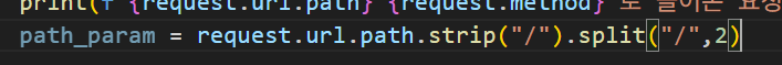 이때는 아직 라우팅 이전이기에 path_params의 사용이 불가능하기에 전달하는 파라미터를 문자열로 직접 분해해서 파라미터를 찾아야한다.