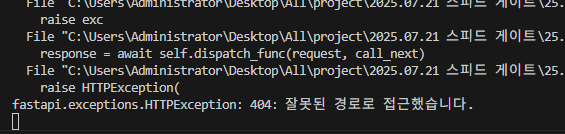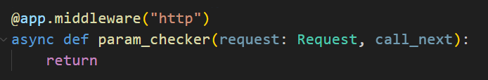 여기서 @app.middleware()는 FastAPI 애플리케이션에서 모든 요청과 응답을 처리하는 함수를 등록하는데 사용되는 데코레이터로 해당 데코레이터를 쓰면 라우트 핸들러 함수가 실행되기 전, 후로 특정 로직을 삽입할 수 있다.