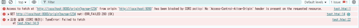 이렇게 CORS가 발생하는 것을 볼 수 있다.