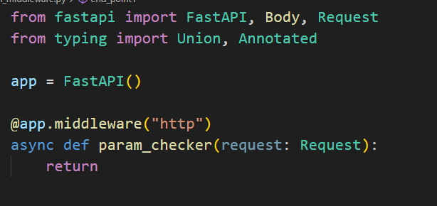 미들웨어는 FastAPI 애플리케이션의 모든 요청과 응답 사이에서 실행되는 함수로 웹 서버에 들어오는 요청을 가로채서 처리를 한 후에 다음 단계로 전달하거나 응답을 수정하는 역할을 한다.
