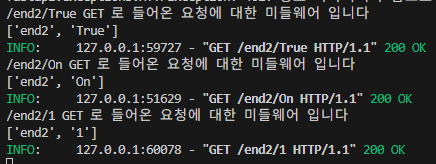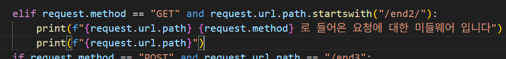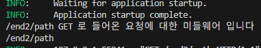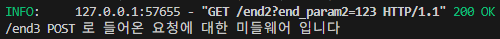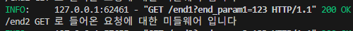 이렇게 응답 및 로직 진행으로 인해 print가 출력되고 또 Get메서드로 구성된 /end2에 대한 요청은