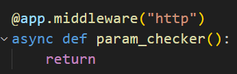 이때 @app.middleware의 ()내부에 들어가는 값은 주로 프로토콜의 종류를 내타내는 문자열들이 들어가는데 현재는 사실 FastAPI가 공식적으로 지원하는건 "http"뿐이다.(그냥 이 내부에는 무조건 http만 들어간다고 봐도 될듯 싶다.)