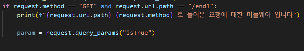이렇게 요청을 다음 로직에게 전달한 응답을 return하면 미들웨어가 생성된 것이다.