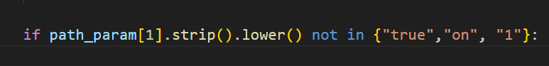 그리고 나서 실제 사용자가 true나 1이나 on으로 보냈을 수 있기에 이걸 포함한것을 확인하게 하기위해서 in을 사용해서 집합으로 리스트를 넣어 확인한다.