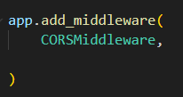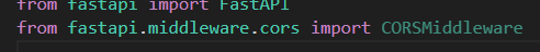 첫번째는 CORS에 대한 미들웨어 클래스를 넣기 위해서 먼저 CORSMiddleware를 import하고