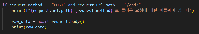 이렇게 나오고 Post메서드로 구성된 /end3에 대한 요청은