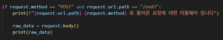 먼저 어떤 요청으로 미들웨어에 들어왔는지를 확인하고 이를 통해서 분기를 나눈다.