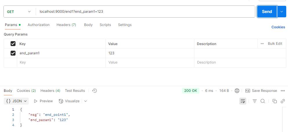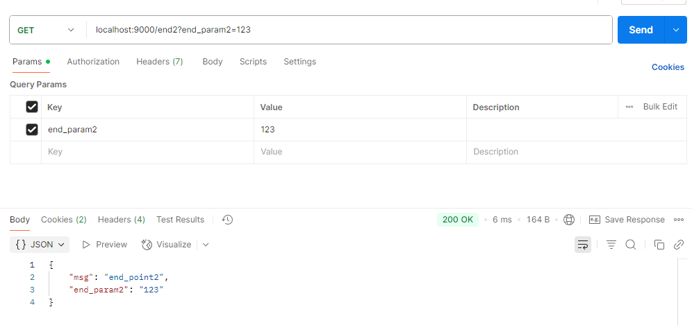 엔드포인트는 각각 진짜 단순하게 요청할때 전달한 값을 함수명과 함께 반환하는 것으로 만들었다.