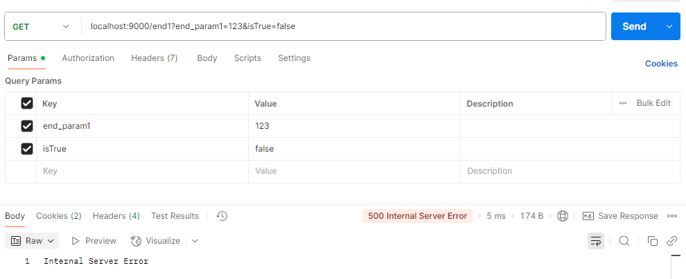 이제 요청을 보내보면 먼저 /end2/ 로만으로 와서 경로 파라미터가 존재하지 않는 요청을 해보면