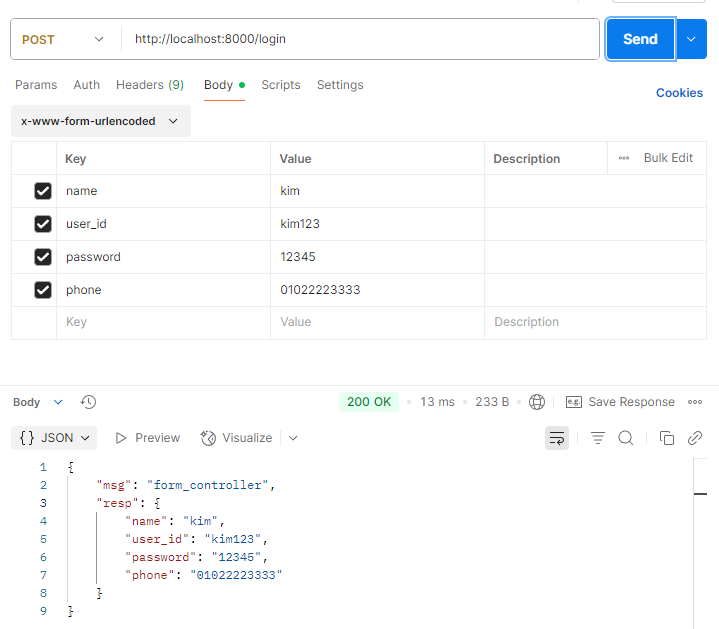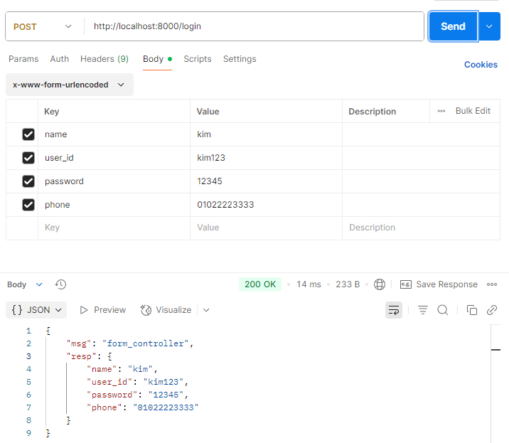 추가로 사용자 아이디, 비밀번호, 전화번호를 받아보자.