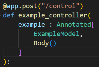 이렇게 Annotated를 설정하고 첫번째 인자로는 모델의 타입을 두번째로는 Body()를 넣어준다.