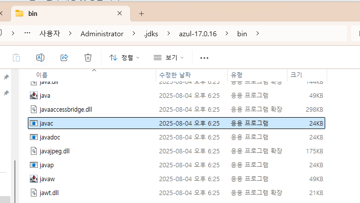 시스템 기본 자바라는 것은 환경변수에 설정되어 있는 기본 자바를 의미하고 cmd나 powershell에서 아래와 같이 입력했을때