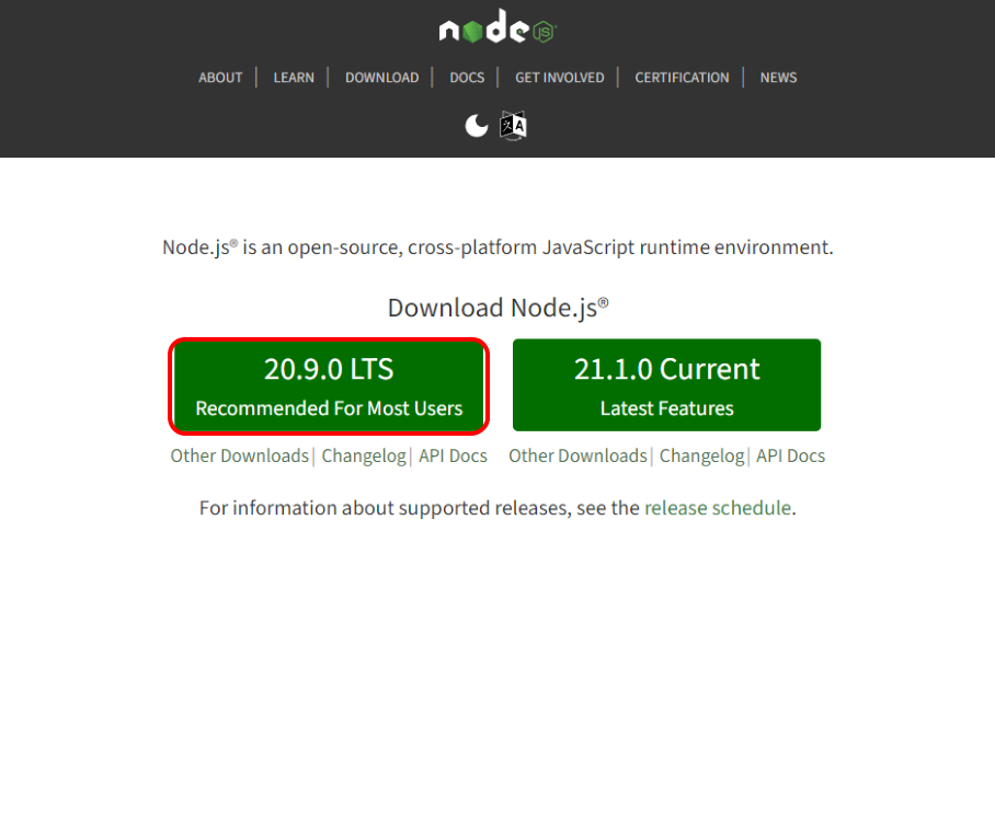 현재 설치하는 node.js의 버전은 20.9.0이다.